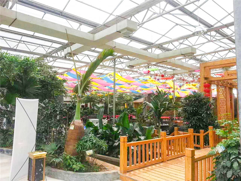 生态餐厅又叫温室餐厅,它是综合运用建筑学、园林学、设施园艺学、生态学等相关学科知识进行规划、设计和建设,以设施调控技术、农艺栽培及管理技术来维护餐厅的优美环境,形成以绿色景观植物为主,蔬、果、花、草、药为辅的植物配置格局,结合假山、瀑布、小桥流水、竹木亭阁等园林景观,多方位立体展现绿色、优美、宜人的就餐环境。