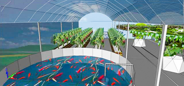 鱼菜共生无土栽培系统,其特征在于:它包括等间隔并列设置的若干个用于养殖鱼的鱼池、设置于各鱼池侧部的用于种植蔬菜的种植槽;各鱼池的底部通过管道依次连通,且在位于前端的鱼池内还设置有潜水泵,还包括与所述潜水泵的出水口连通的,且与所述种植槽数目相同,位置对应的排水管,所述潜水泵抽取的鱼池内的水通过所述排水管进入所述种植槽内;在各种植槽的底部还设置有出液管,所述出液管的出水口端悬空设置于所述鱼池的顶部。