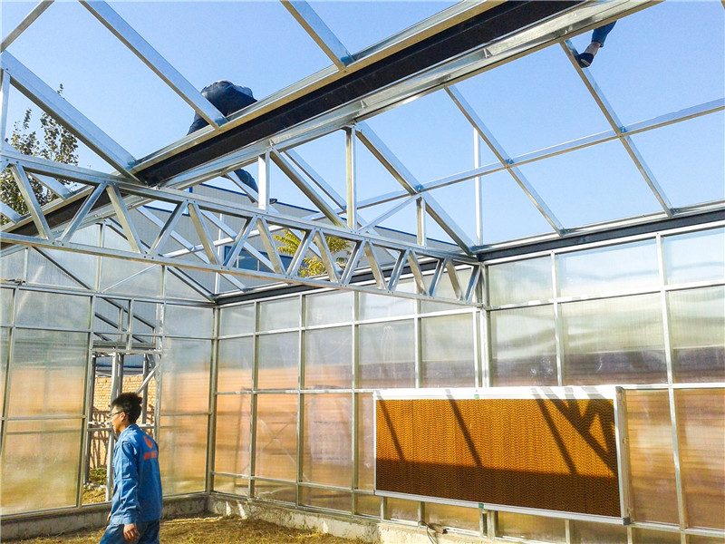 纹络型pc阳光板温室采用单层或多层中空pc板作为顶部及四周的围护,专业的铝合金型材做框架,镀锌钢骨架作为主体骨架,具有美观、透视率高、保暖性能好的特点,专用的抗紫外线pc板可以保证透光率。