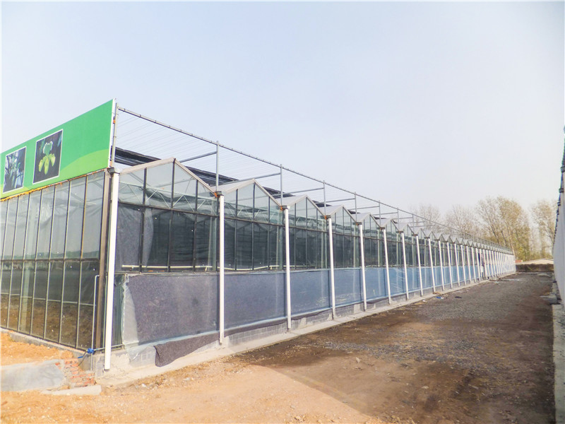 玻璃温室也可做顶部覆盖材料为薄膜、PC板、耐力板、玻璃,四周为玻璃,一般顶部覆盖15丝PO膜、5~8mm阳光板、中空或非中空钢化玻璃较多。四周玻璃一般为单层普通玻璃、单层钢化玻璃、普通中空钢化玻璃、5+6+5mm中空钢化玻璃。内部宽敞明亮,操作空间大,温室利用率高。美观性好,用作农业公司展示、旅游观光、休闲娱乐、交易等较多,也可用作种植,安全系数高。