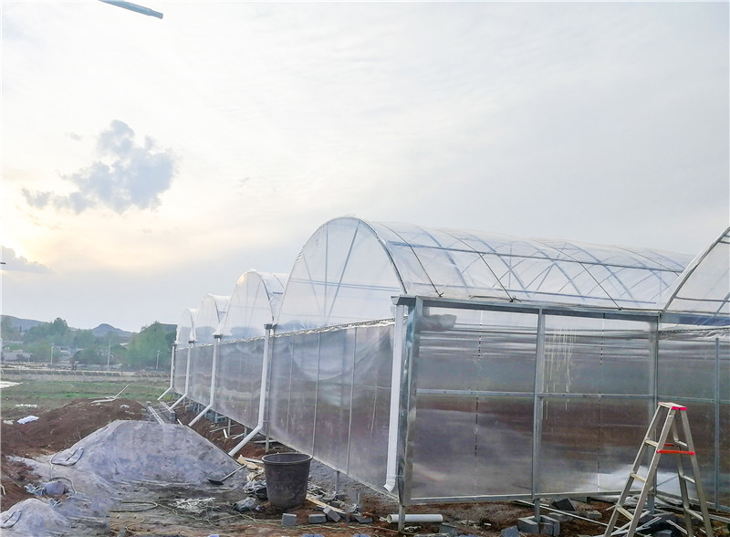 薄膜连栋型温室特性:性价比高、结构稳定、透光保温性能强,拱圆形室顶美观大方,属经济型连栋温室。