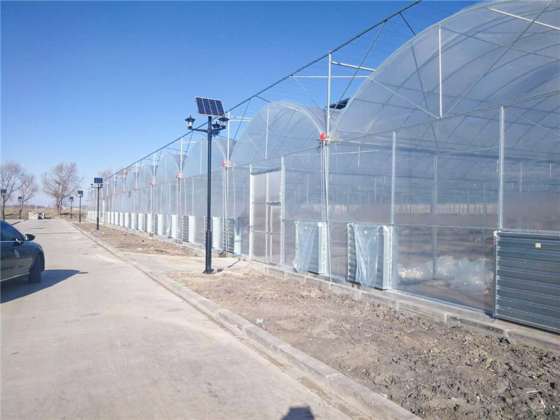 薄膜连栋型温室特性:性价比高、结构稳定、透光保温性能强,拱圆形室顶美观大方,属经济型连栋温室。