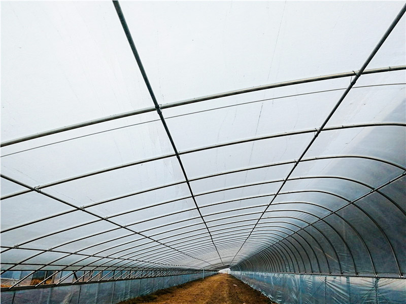 此温室覆盖材料为薄膜(PO膜、PEP膜、长寿膜、PVA膜等),使用年限为3~5年,公司质保5年。