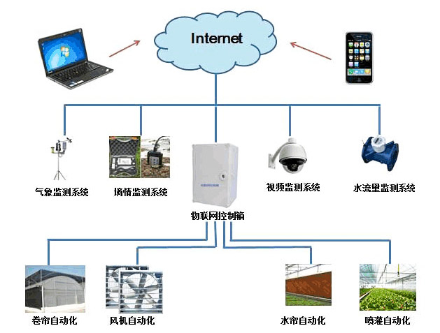 物联网软件平台并不只是一个操作平台,而是一个庞大的管理体系,是用户在实现农业运营中使用的有形和无形相结合的控制系统。在这个平台上,用户能够充分发挥自己的管理思想、管理理念、管理方法,实现信息智能化监测和自动化操作,有效整合内外部资源,提高利用效率。关注大棚环境动态不再需要进入大棚中查看了,而是打开电脑就能监测。该系统在温室大棚中布置的各种环境传感器,以及摄像头等,就像是该系统的千里眼,不用出门,就能了解当前温室大棚中的空气温湿度、光照强度、土壤温湿度等,有利于管理人员开展优良的温室管理。同时温室大棚物联网应用系统还具备远程环境调控功能,它基于的农业物联网技术实现了电脑或手机远程指令操作,百里之外也能完成浇水、施肥、拉帘、放风等工作,既节省人工,又提高了效率。